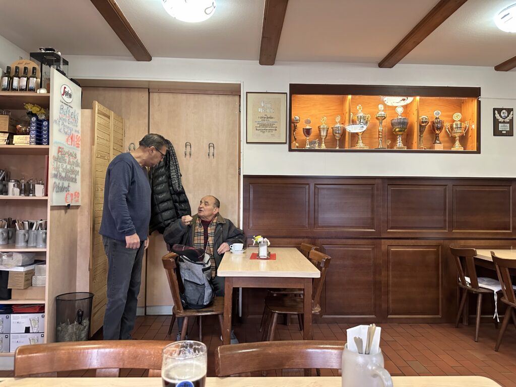 Antwort: Ich glaube, wir sind ein Treffpunkt für Familien, Sportler, ältere Leute, Stammgäste, Kinder nach dem Training. Viele kommen seit 20 Jahren.