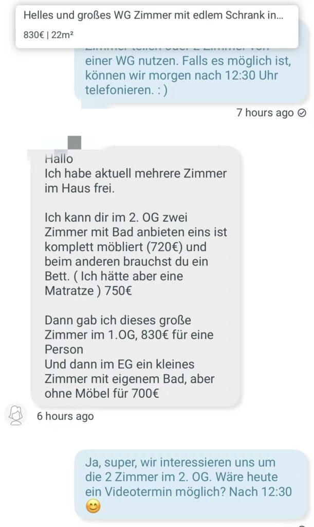 After weeks of rejection and uncertainty, one listing on WG-Gesucht finally offered hope. The current tenants of a three-person shared flat were open to renting to international students and agreed to conduct an online viewing. The conversation went smoothly, documents were exchanged, and a few days later, confirmation arrived: the room was hers.