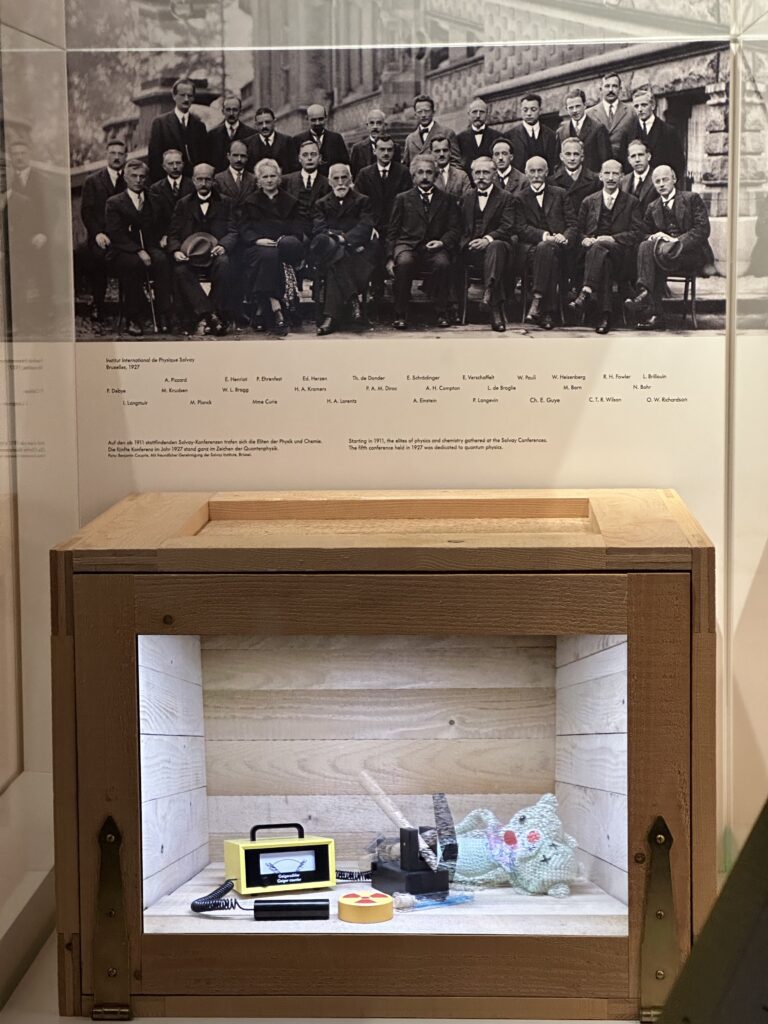 What impressed me most was the interactive exhibits, especially the one explaining Erwin Schrödinger’s famous thought experiment from 1935. Rather than just looking at objects behind glass, visitors could operate models and see scientific principles in action. The seemingly absurd implications of quantum physics clearly illustrated with a cat placed in a sealed box, along with a radioactive sample. If an atom in the sample decays, the Geiger counter detects it, triggering a hammer that breaks the vial and kills the cat. This hands-on approach made complex ideas much easier to understand and surprisingly fun.
