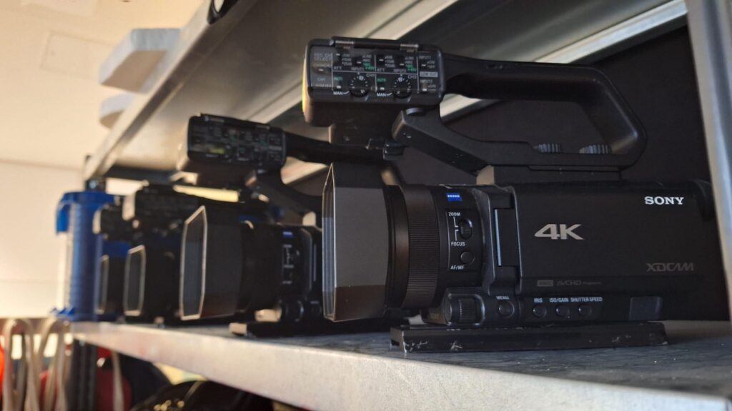During the tour, we explored many different rooms, including a podcast studio, meeting rooms, technical areas, radio studios, and a large TV studio. As someone interested in communication, it was exciting to see so much professional equipment in one place. One moment that really caught my attention was in the video equipment room. Our guide explained that while they still have large professional cameras, they increasingly use iPhones and small gimbal cameras because they offer almost the same quality and are much more practical. This showed me how much media production has changed and how flexible it has become.