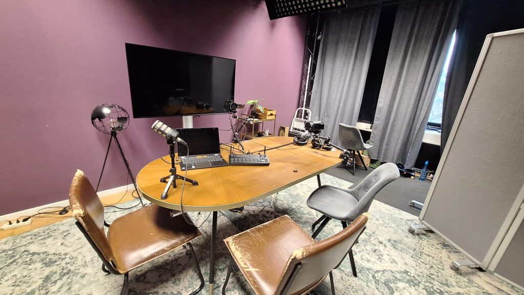 The large working area of the interns was one of the most impressive spaces for me. Many students were working there at the same time, each at their own desk, doing different tasks. The room was full of colors, post-its, notes, and pictures. It looked a bit chaotic, but in a creative and lively way. You could really feel that ideas were being developed and that everyone was actively involved. Some students were writing scripts, others were preparing content or working on production. It was inspiring to see how much responsibility young people already have there.
